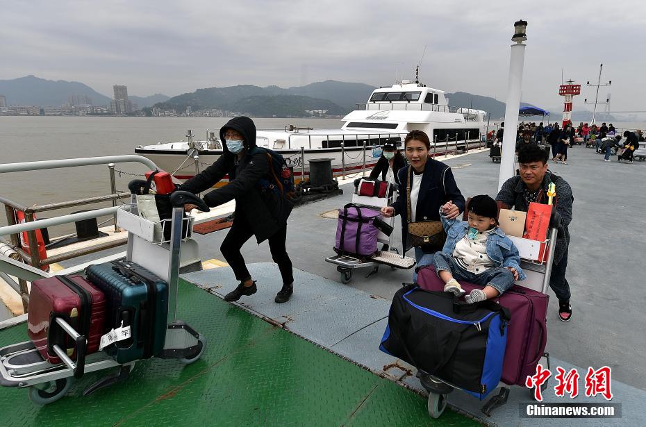 4月1日起,福(州)马(祖)“小三通”客运航线扩容,由每日“二进二出”调整为“四进四出”,全面恢复新冠疫情停航前航班运行模式。当日,福马“小三通”客运航线共载运旅客229人次。图为4月1日,台胞搭乘“安麒6号”轮由福州马尾琅岐对台客运码头前往马祖。中新网