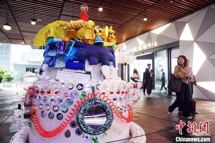 环保艺术装置展吸引上海市民。