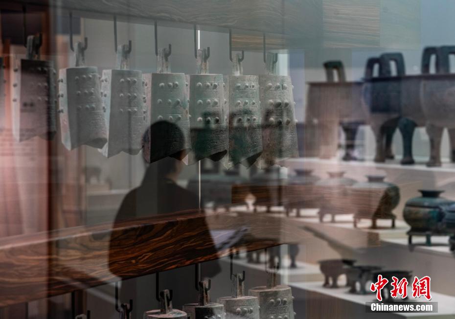 春秋时期的编钟展品和春秋时期的青铜礼器“九鼎八簋九鬲”展品。中新网