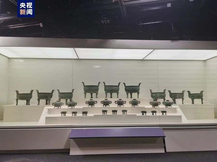 春秋时期的青铜礼器“九鼎八簋九鬲”展品。大陆央视新闻客户端