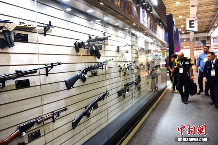 4月2日,2024拉丁美洲航空航天与防务展(又称巴西防务展)在巴西圣保罗启幕。拉丁美洲航空航天与防务展是拉美地区规模最大,也是最具影响力的国防与安全设备和服务展会。本次展会吸引来自20个国家的150多个品牌参展。图为一家军工企业展示枪械武器。