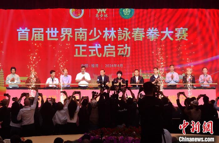 4月3日,世界福清同乡联谊会代表成员参观福清南少林寺暨首届世界南少林咏春拳大赛启动仪式在福建福清市南少林寺举行。此次大赛在全球设立六大赛区,邀请新加坡、印度尼西亚、马来西亚等50余个国家和地区的咏春拳协会组织和个人一同竞技,赛会将持续至8月,最终决出世界冠、亚、季军,并评选出50个优秀组织奖。图为启动仪式。中新网