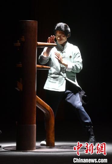 郑祖杰演示咏春拳木人桩法。中新网记