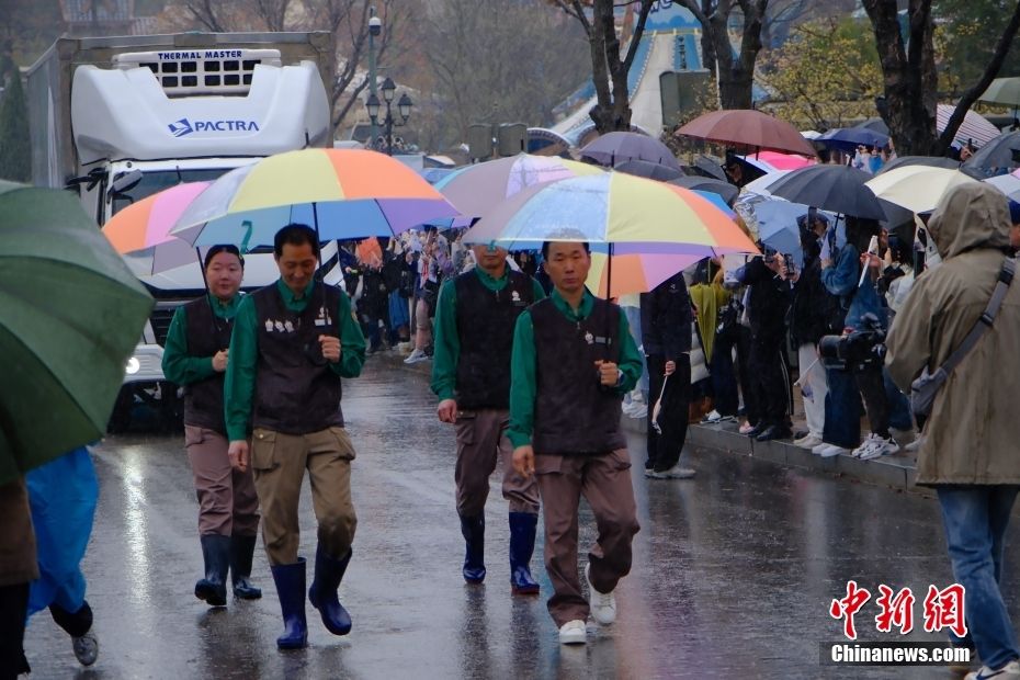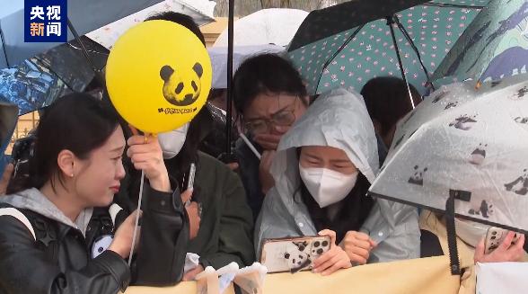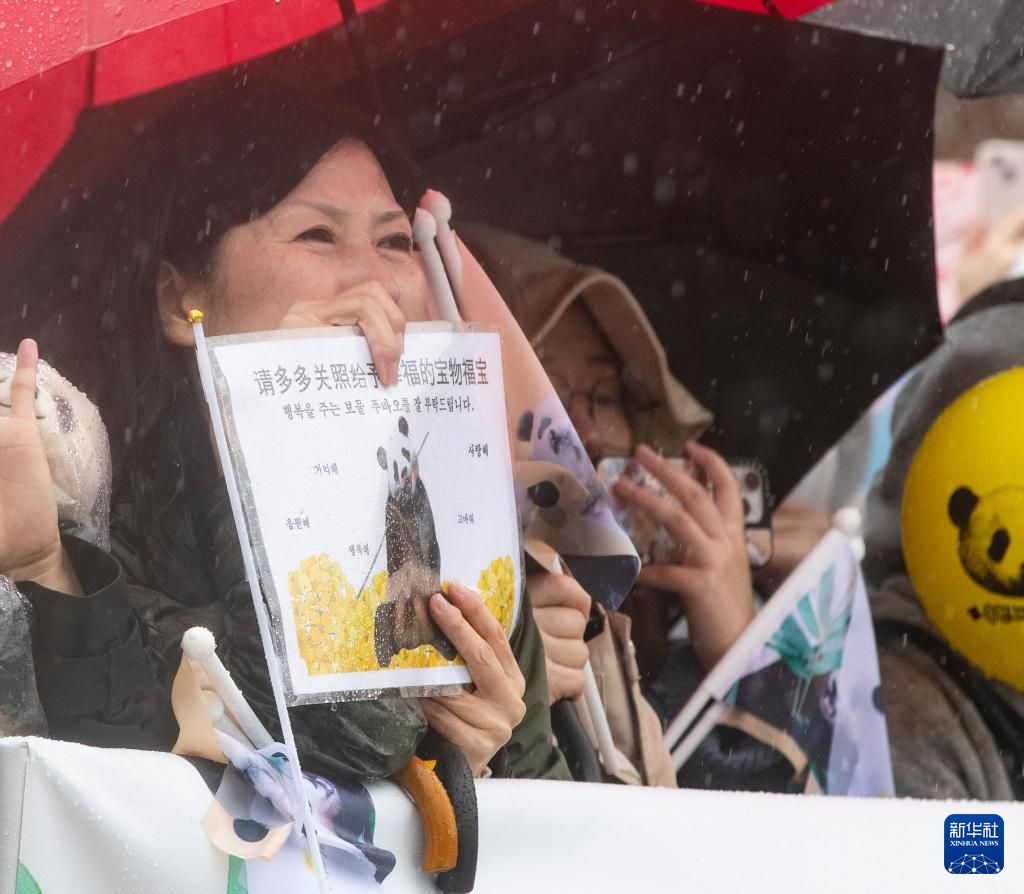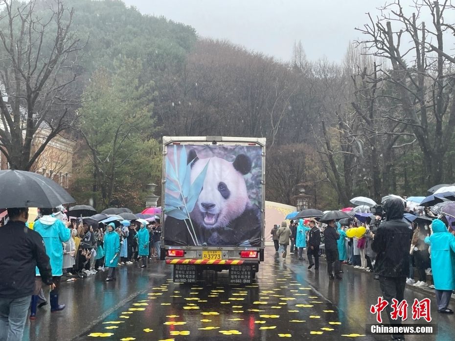 韩国民众雨中泪别“福宝”。大陆央视新闻客户端