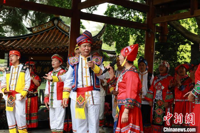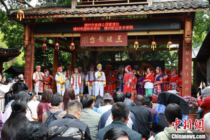 广西山歌爱好者唱山歌,迎接广西“三月三”。