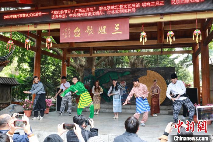 4月8日,“我们的节日”·“唱响三月三·民族团结心连心”文艺展演在鱼峰公园举行。