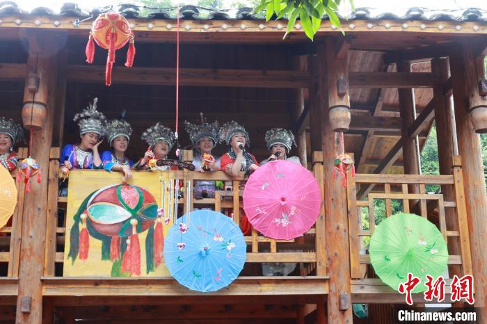 4月8日,“网红”山歌手山三妹团队唱山歌。
