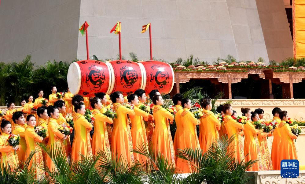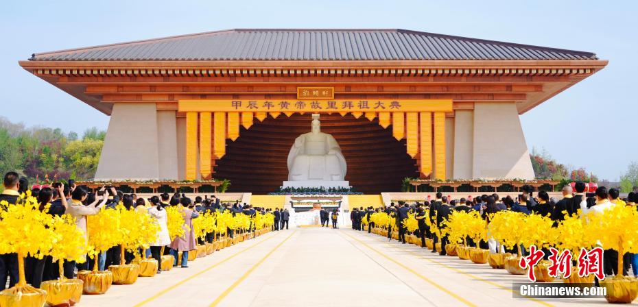 三月三,拜轩辕。4月11日,主题为“同根同祖同源,和平和睦和谐”的甲辰年黄帝故里拜祖大典在河南省郑州市新郑黄帝故里举办。来自海内外的华夏儿女汇聚在这里,弘扬黄帝文化、根亲文化、拜祖文化,凝聚华侨华人的心灵故乡。图为甲辰年黄帝拜祖大典现场。中新网