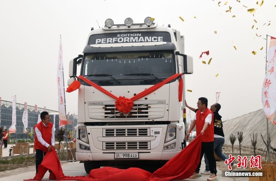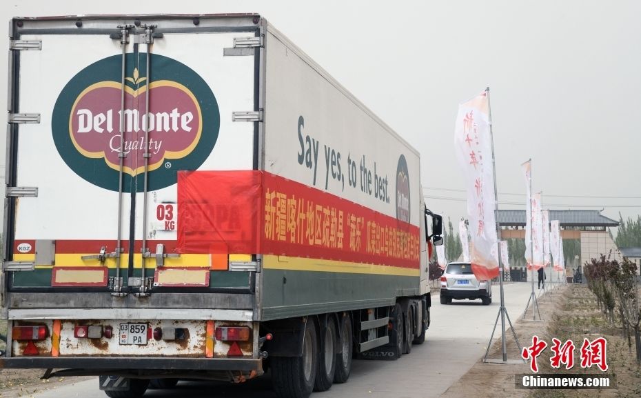 4月22日,新疆喀什地区疏勒县首车32吨瓜菜发往乌兹别克斯坦。中新网