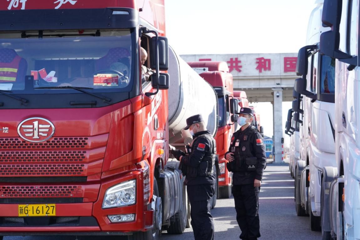 据悉,截至4月22日,位于中哈边境的中国新疆巴克图口岸今年累计出入境车辆1.2万余辆次,出口商品车3700余辆次,中哈边民互市进口货值超过1.1亿元人民币,进出口贸易日渐火热。图为巴克图出入境边防检查站工作人员验放车辆。央广网