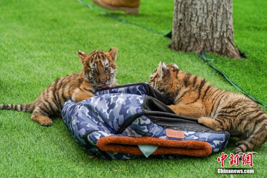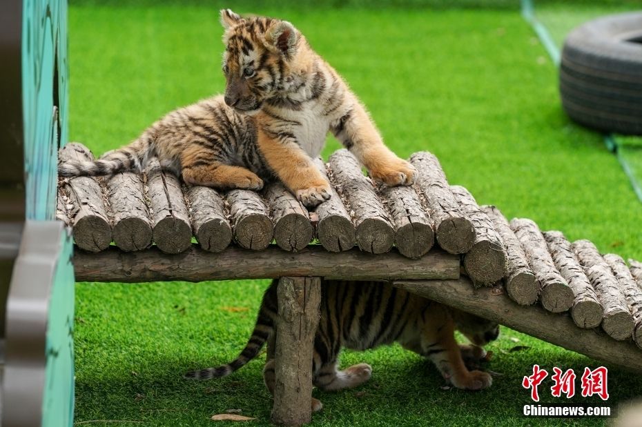 两只小东北虎在玩耍。中新网
