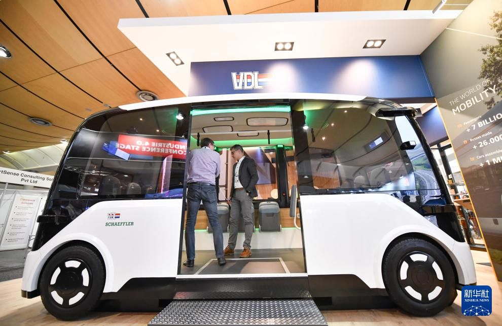 参观者在参观一款无人驾驶汽车。