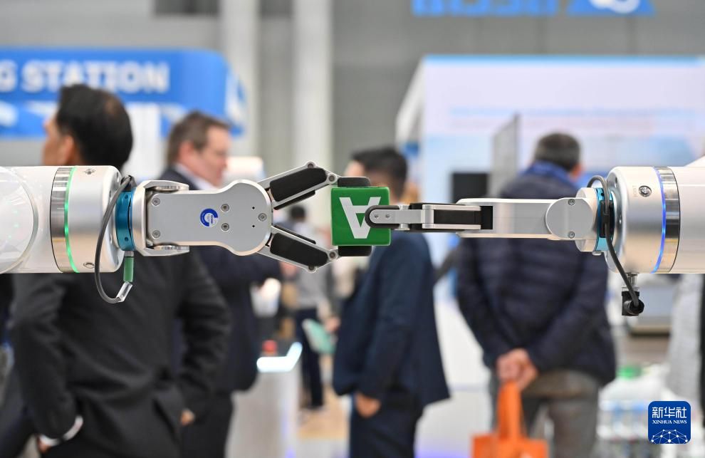 2024年德国汉诺威工业博览会于4月22日至26日举办,吸引来自约60个国家和地区的近4000家参展商。本届展会重点关注的领域包括能源转型、工业4.0、数字化、人工智能与机器学习等。工博会官网显示,本届展会中国展商数量占三成,仅次于东道主德国。图为一款新松工业焊接机器人在进行演示。