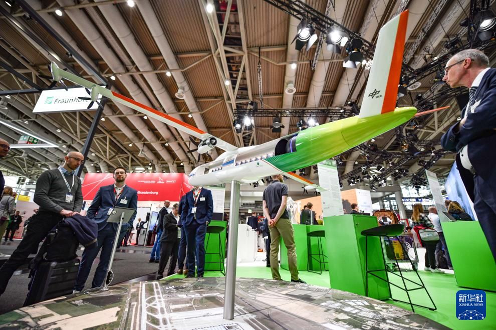 参观者在工博会上参观一款氢能飞机模型。