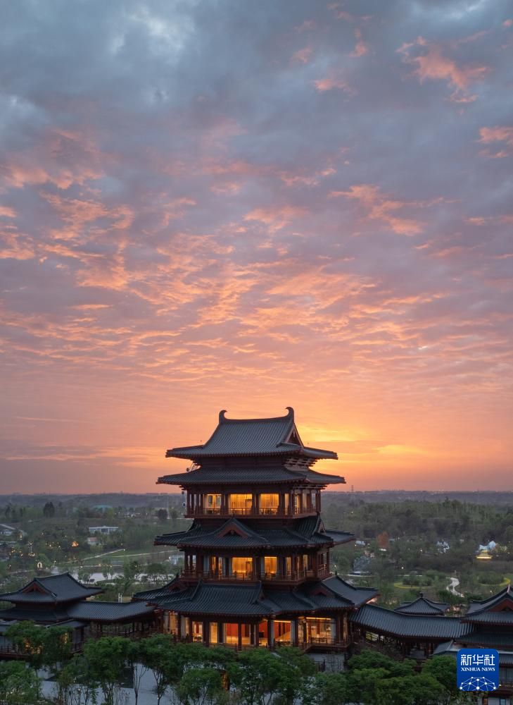 成都世园会主会场锦云楼(无人机照片)。新华社