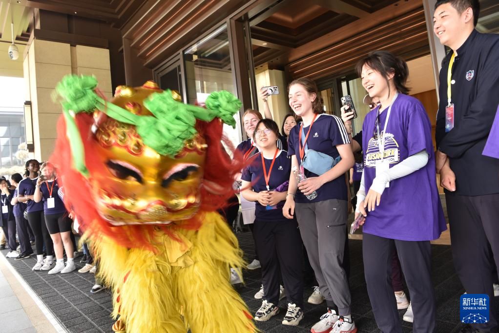 4月22日,马斯卡廷中学学生在河北雄安新区观看非遗表演。新华社