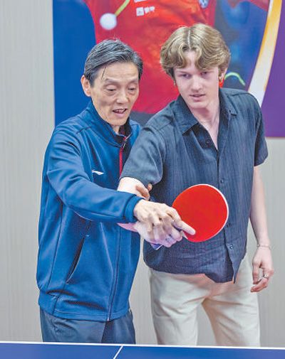 马斯卡廷中学学生在中国教练指导下打乒乓球。人民网