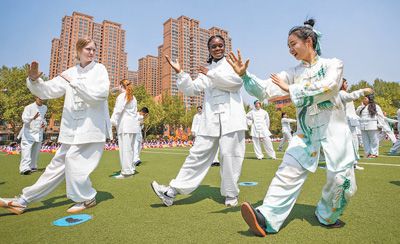 马斯卡廷中学学生在中国老师指导下学习太极拳。人民网