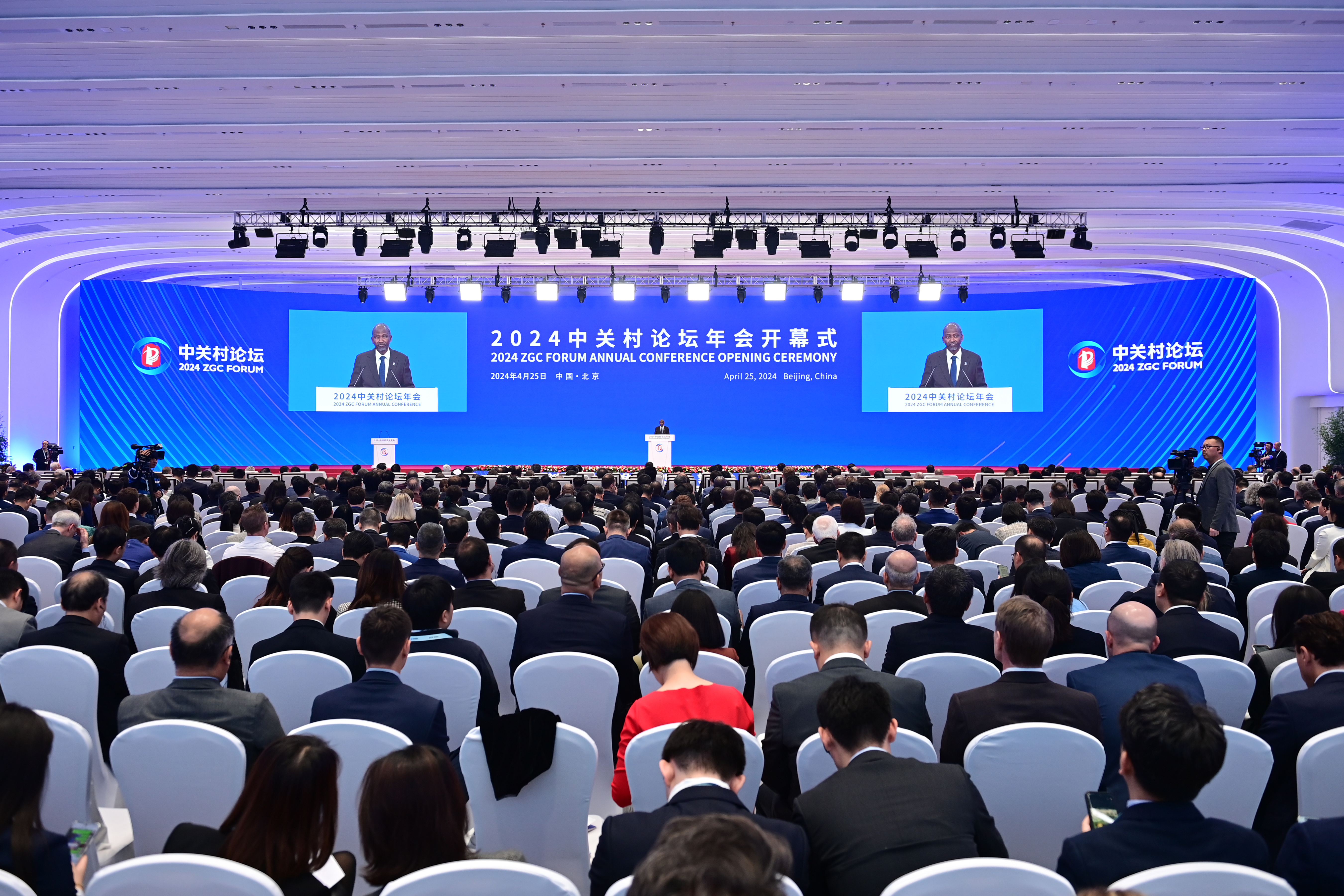 4月25日,2024中关村论坛年会开幕式现场。中新社
