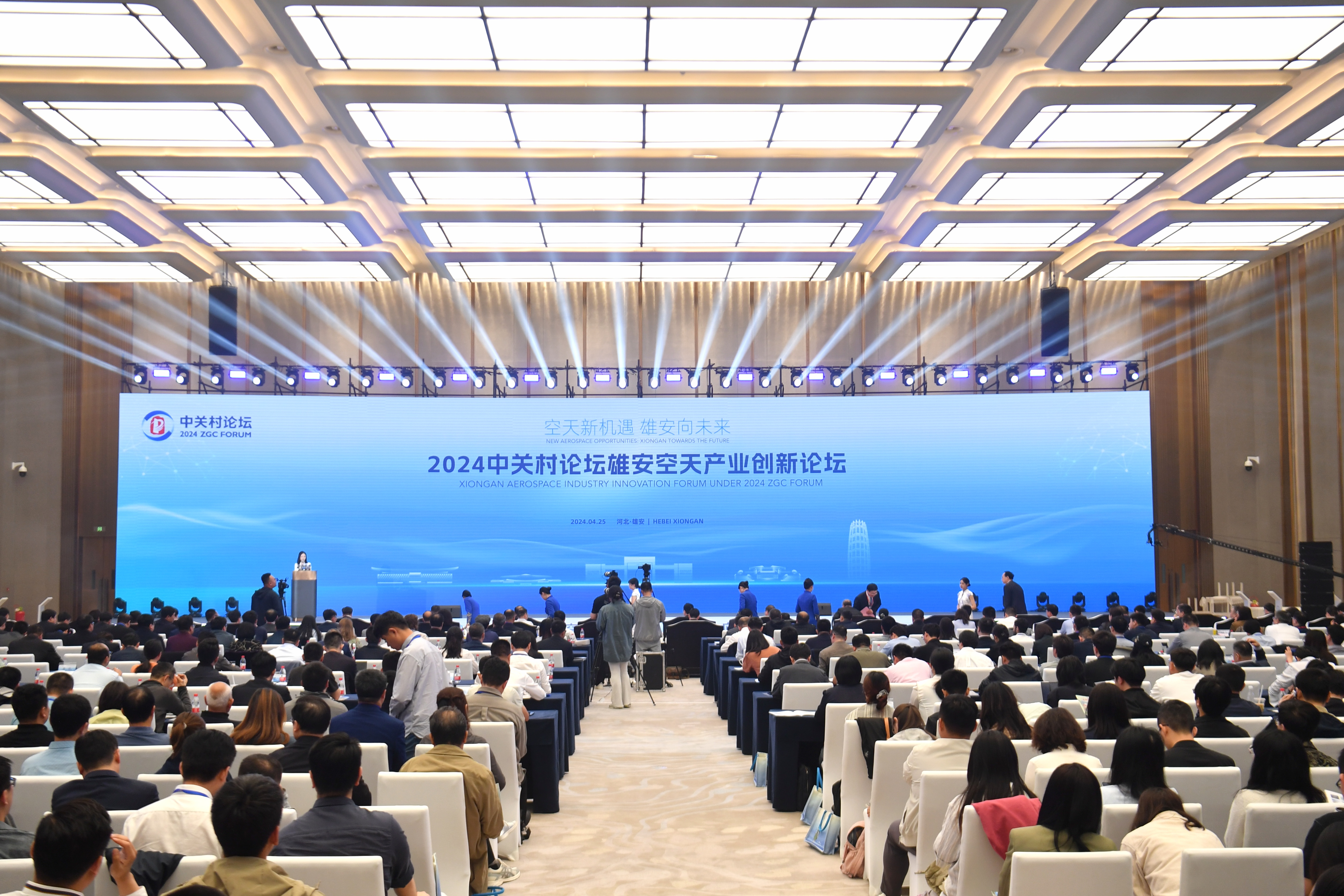 4月25日,2024中关村论坛年会平行论坛雄安空天产业创新论坛在雄安国际酒店举办,这是中关村论坛首次在年会期间于京外举办的平行论坛。图为2024中关村论坛年会平行论坛雄安空天产业创新论坛现场。中新社
