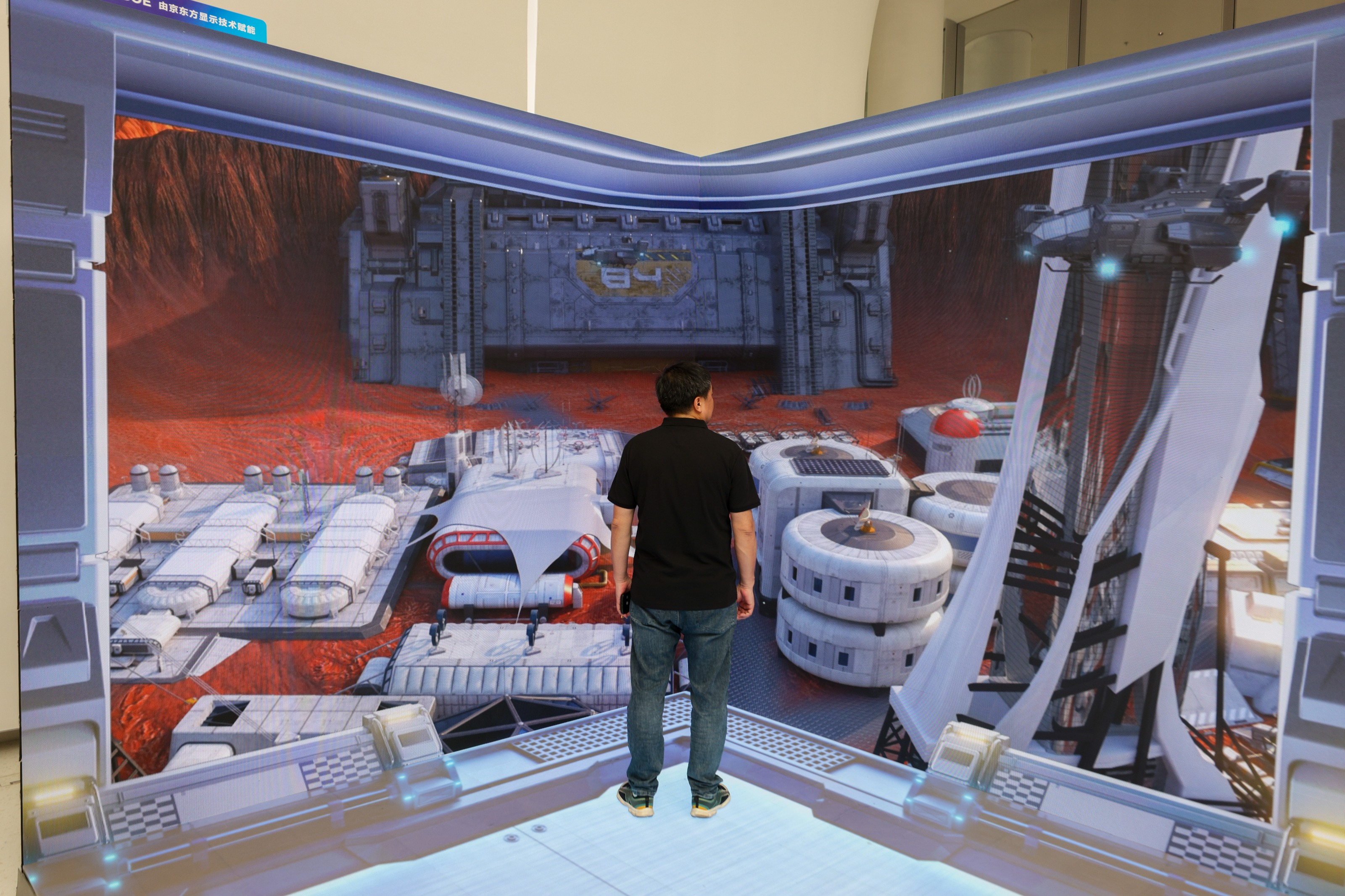 4月25日,一款3D屏幕吸引参会嘉宾。中新社