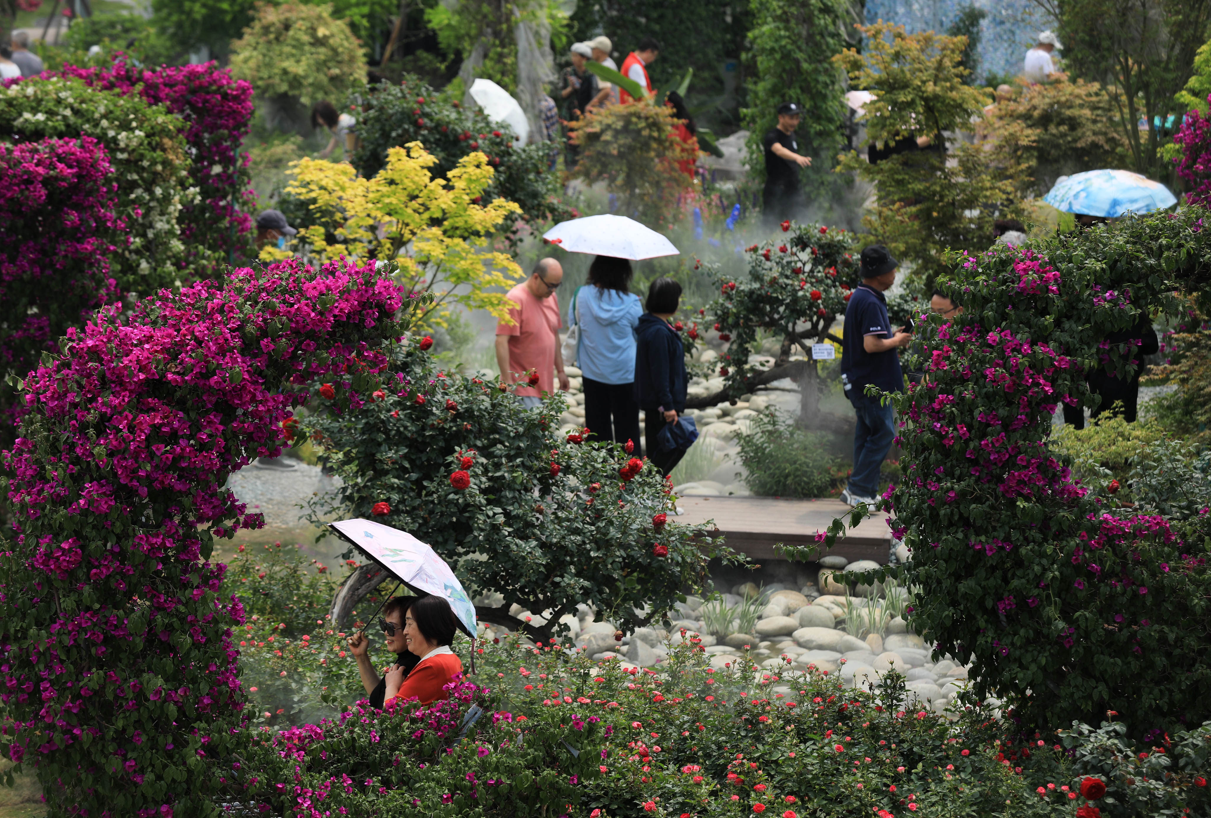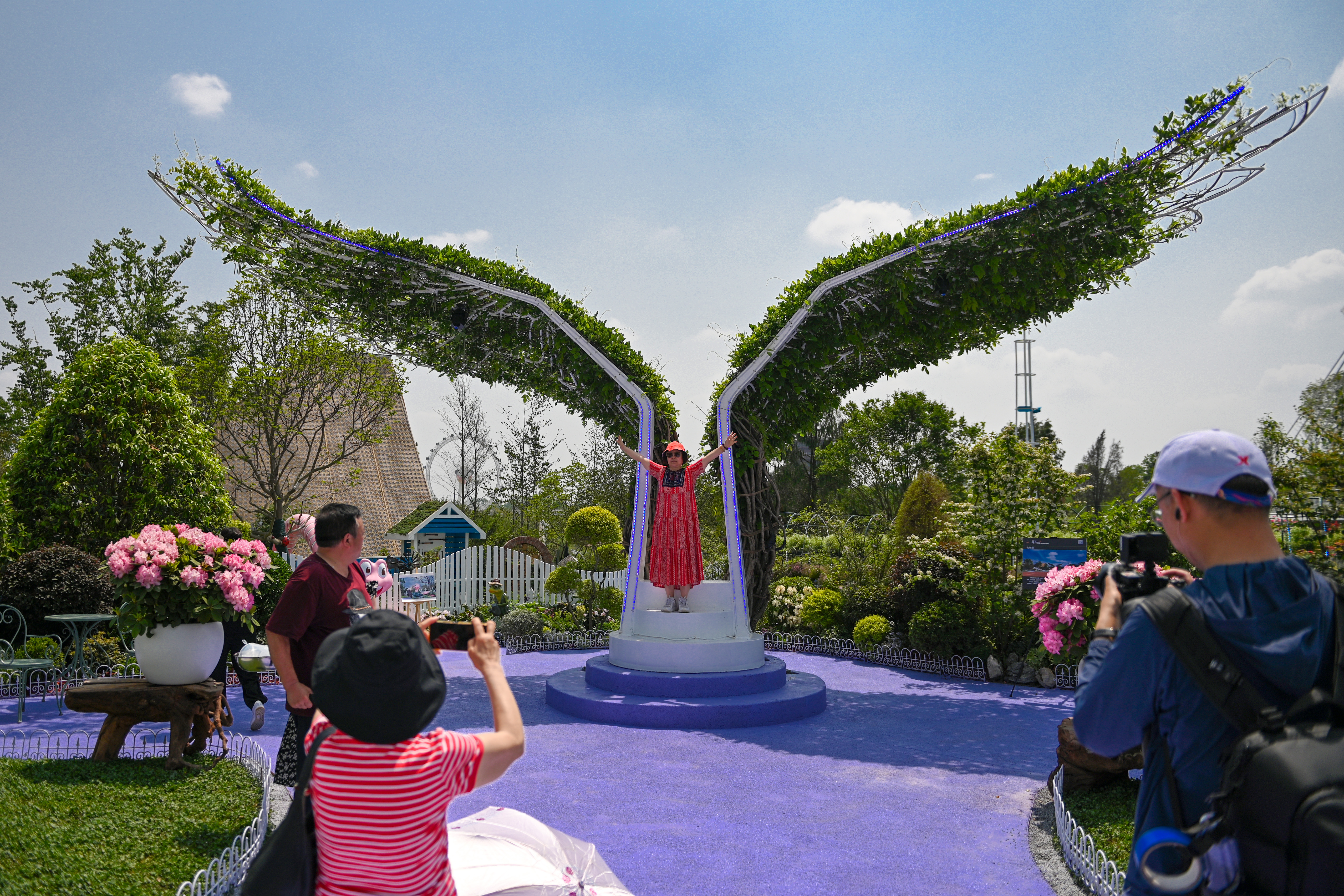 参观者在生活园艺展区芃丁花园留影。中新社
