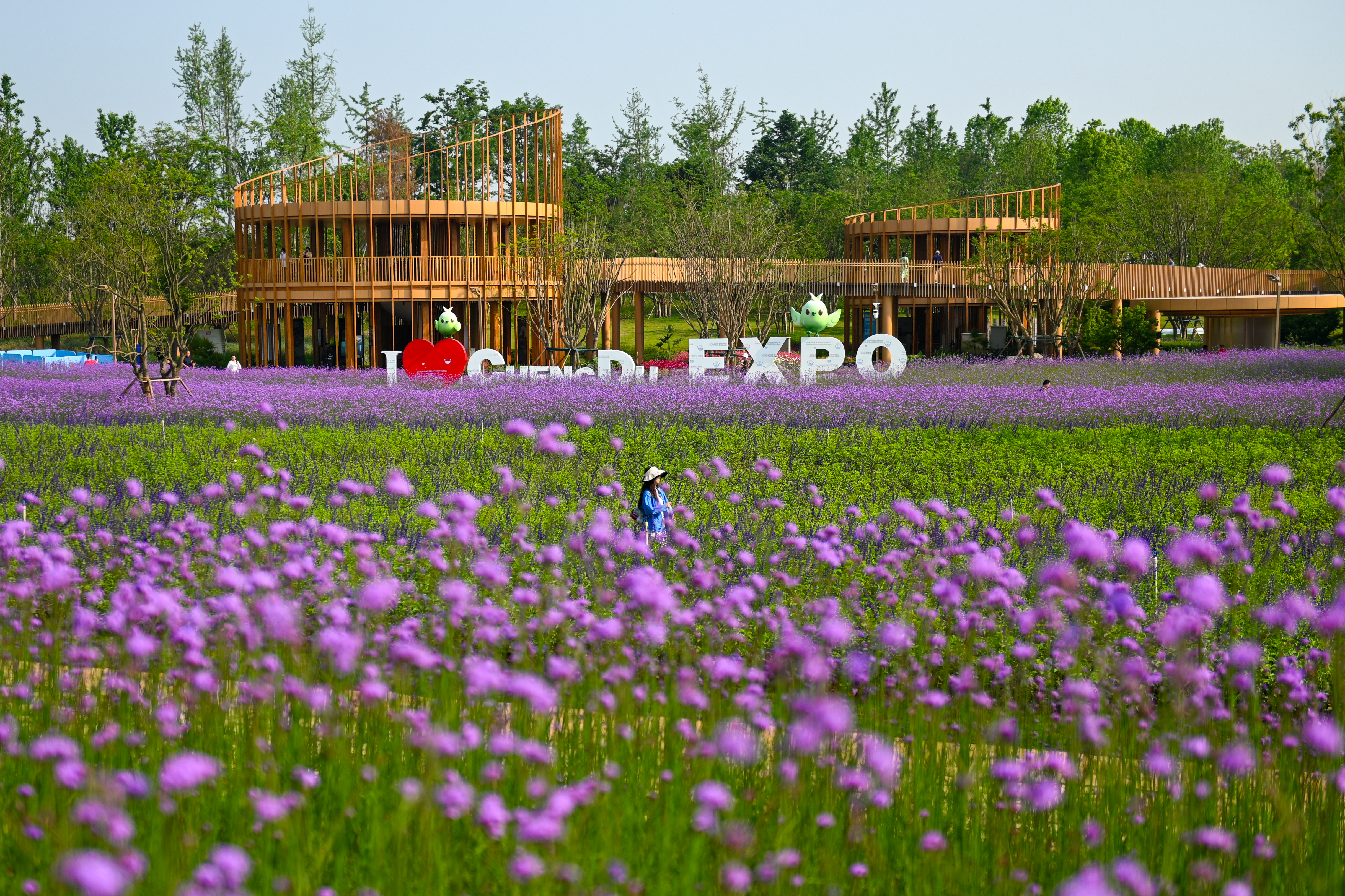 成都世园会花田驿站一角。中新社