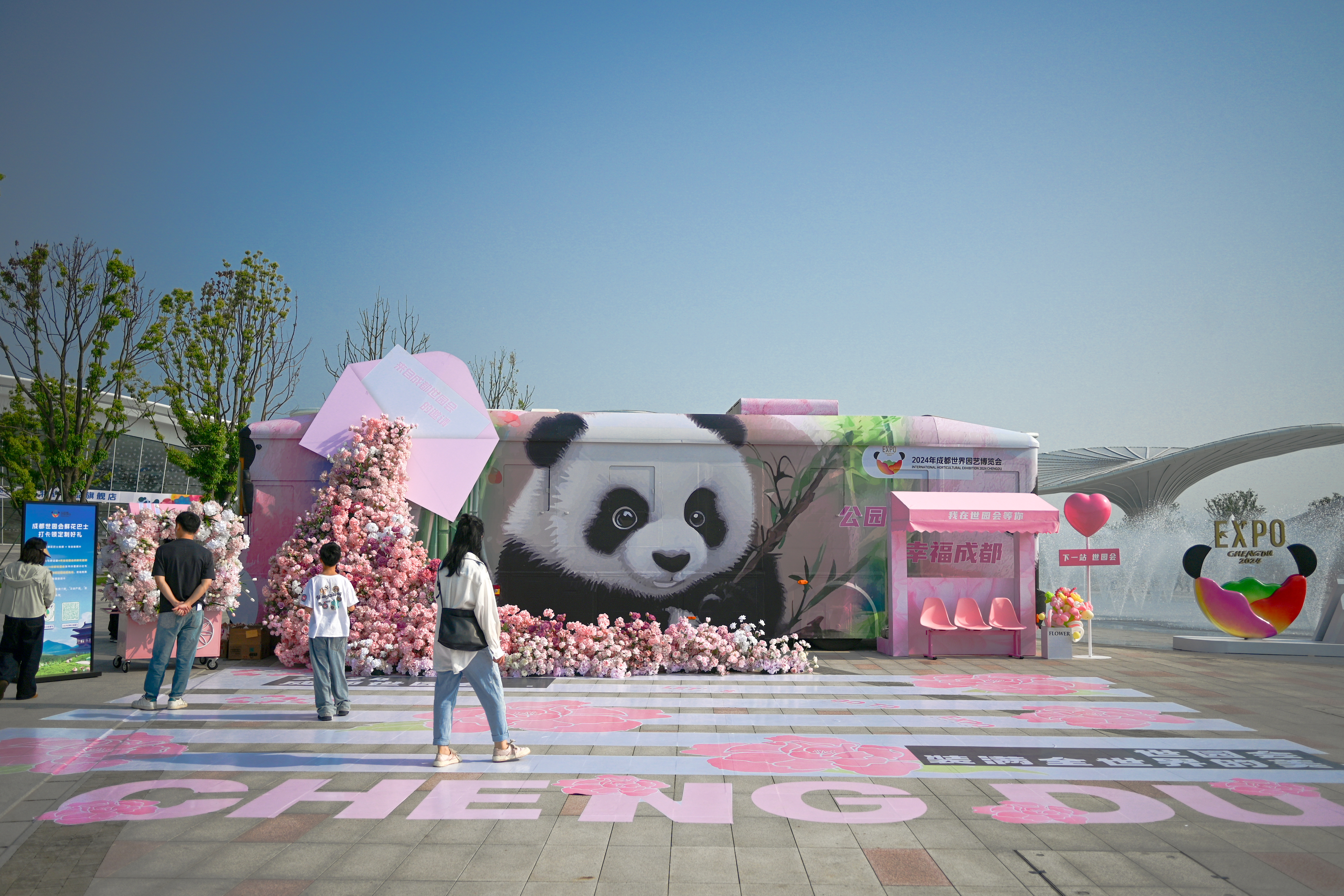 成都世园会“鲜花巴士”吸引民众。中新社