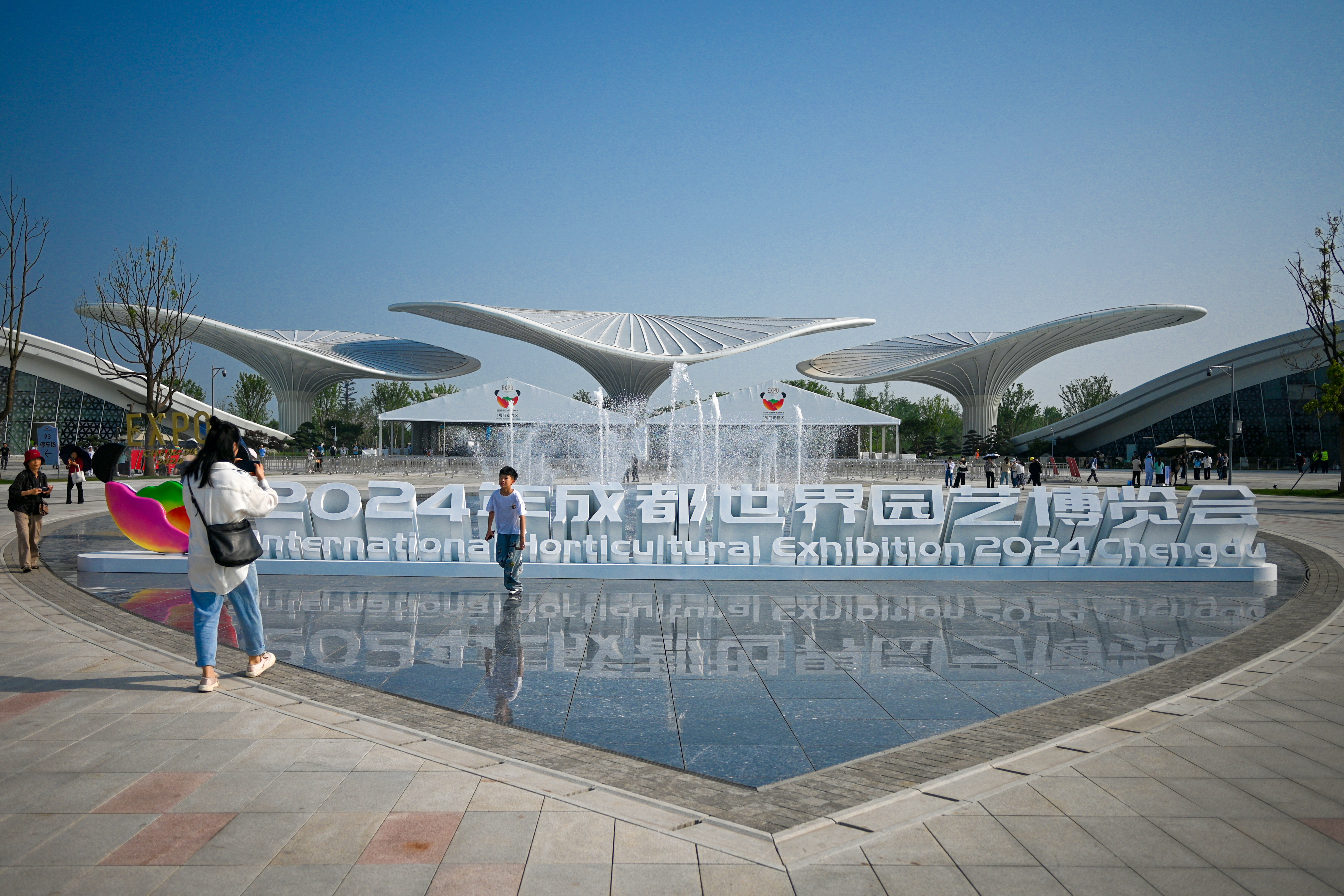 4月26日,2024年成都世界园艺博览会(简称“成都世园会”)在中国四川成都开幕。27日,正式向公众开放,本届博览会以“公园城市 美好人居”为主题,共建成113个室外展园,涵盖了英式、法式、日式、意式、中东、东南亚等全球主要园林风格。吸引民众前往打卡和观赏来自世界各地的特色花卉植物以及园林园艺精品。据了解,成都世园会将持续至10月28日。图为民众在1号门前拍照。中新社