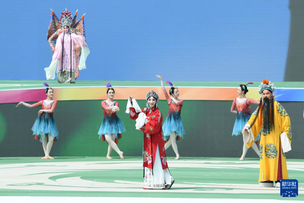 4月26日,开幕式现场的精彩表演。新华社