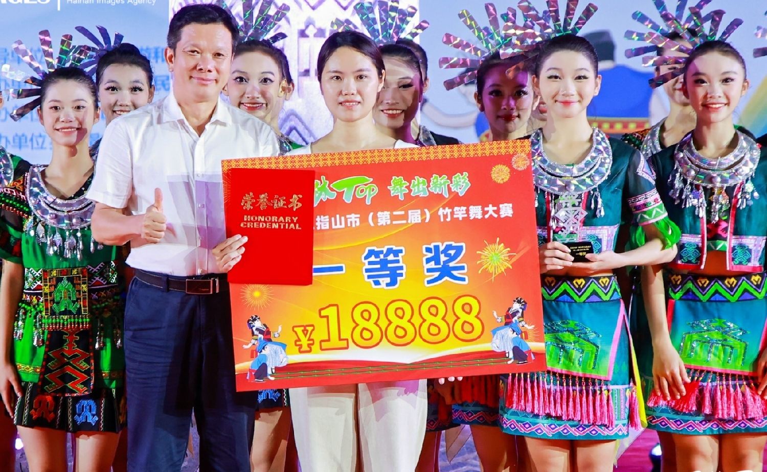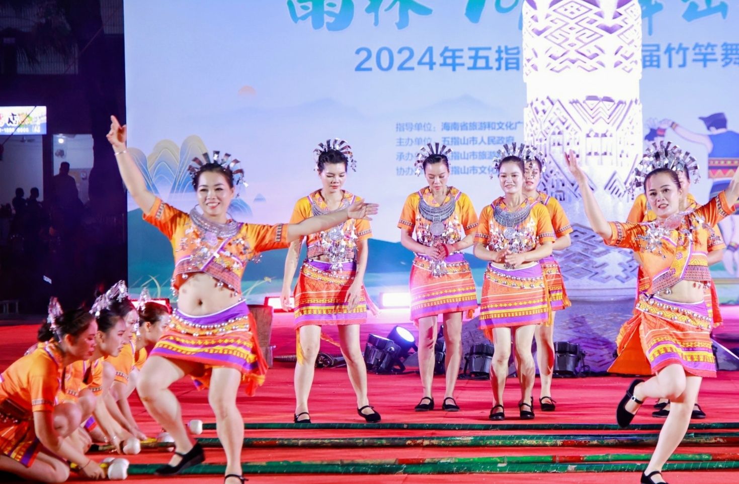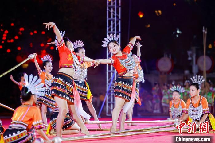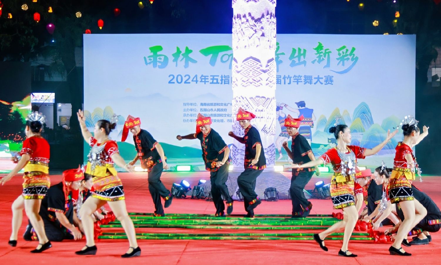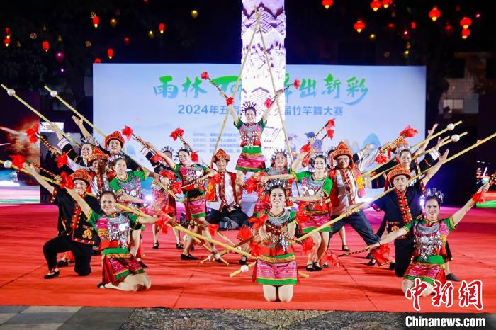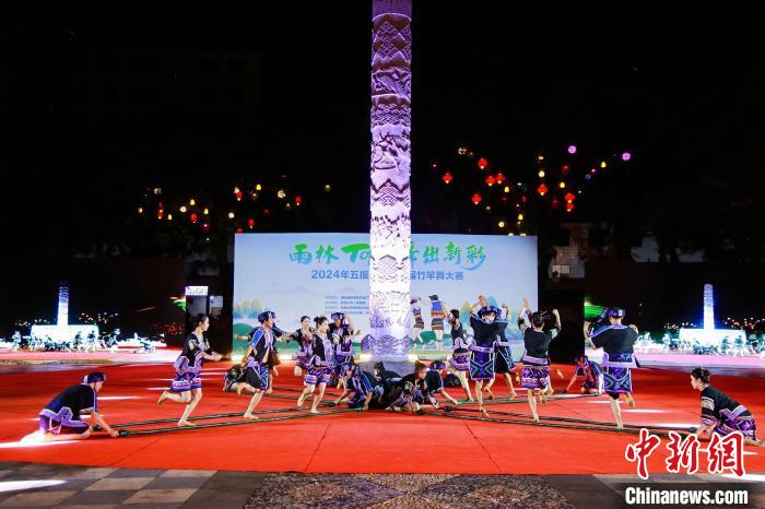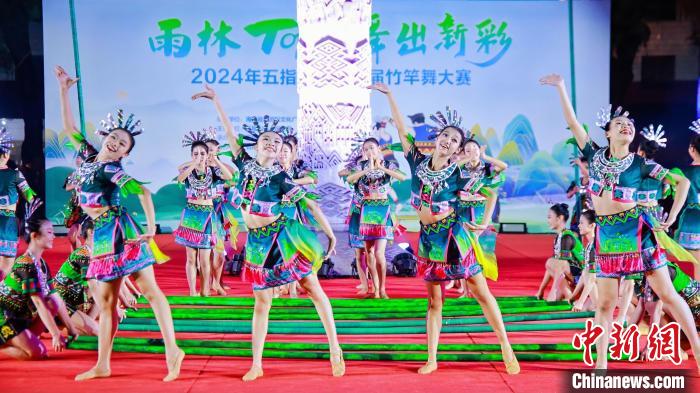 “雨林TOP 舞出新彩”——2024年五指山市第二届竹竿舞大赛现场。中新网/五指山市融媒体中心供图