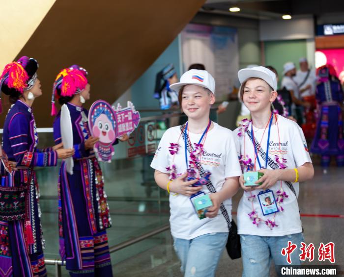 来自俄罗斯的双胞胎们陆续走出昆明长水机场。