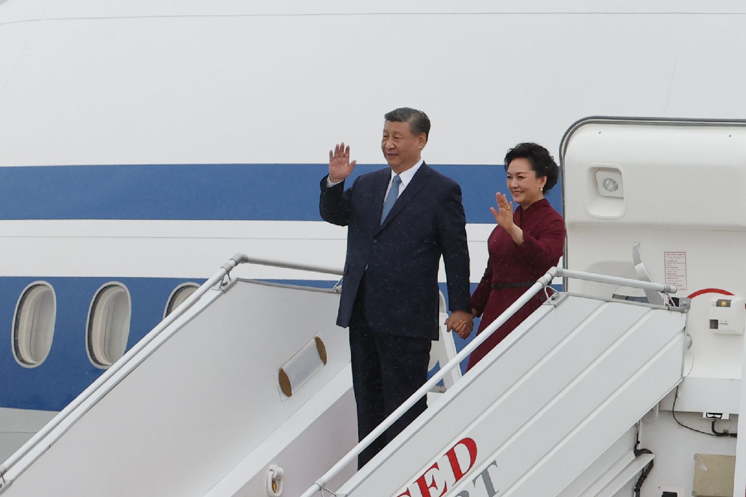 习近平乘坐专机抵达巴黎奥利机场时,阿塔尔等法国政府高级代表热情迎接。新华社