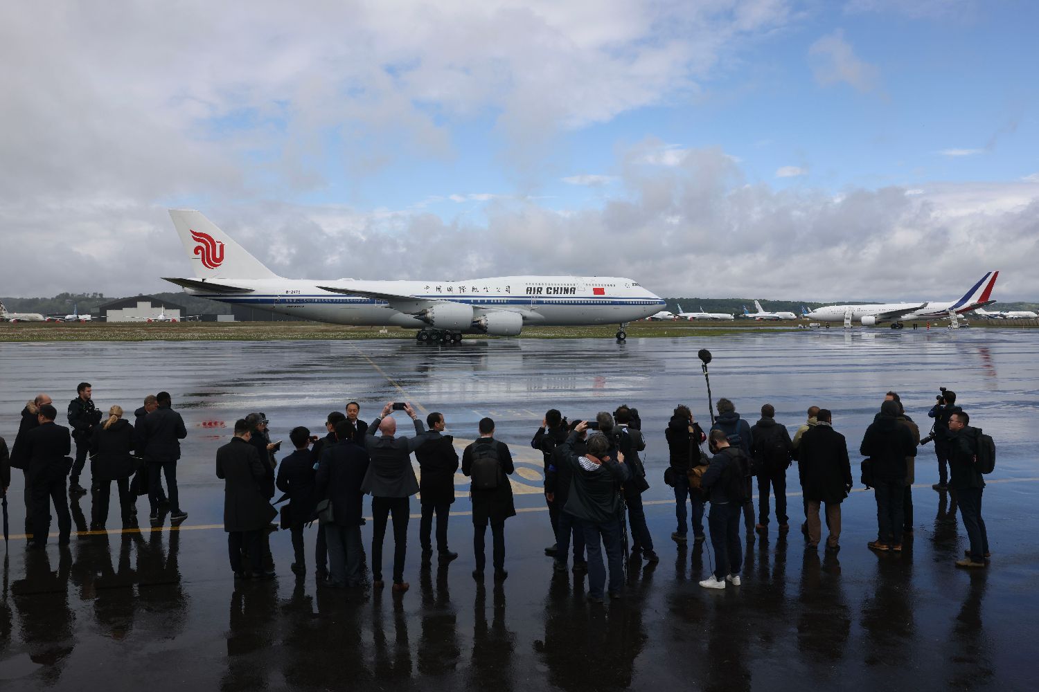 当地时间5月7日,应法国总统马克龙特别邀请,中国国家主席习近平乘专机离巴黎赴法国西南部上比利牛斯省访问,并举行中法元首小范围会晤。当晚,习近平乘专机离开法国。图为当地时间5月7日,习近平从法国巴黎飞抵塔布,继续对法国的国事访问。中新社