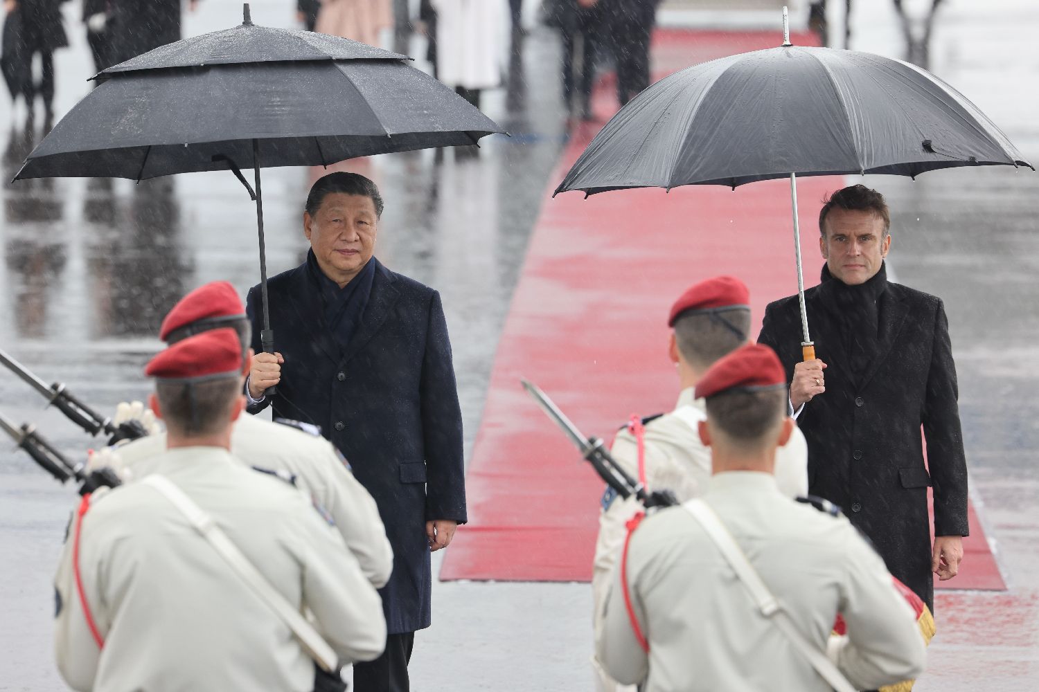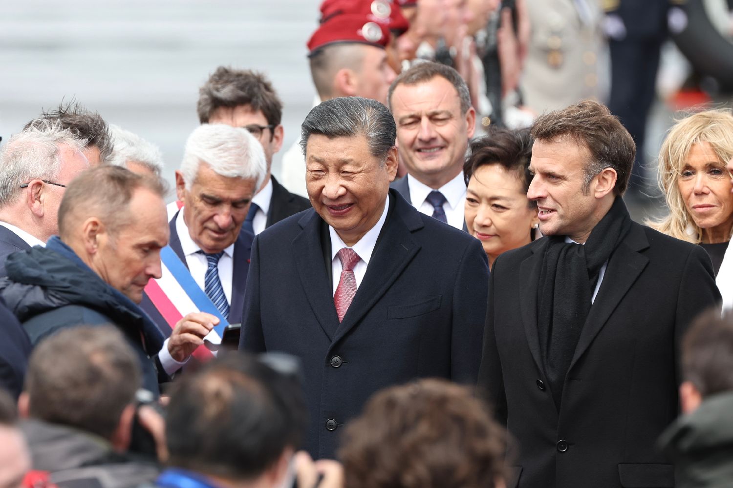 当地时间5月7日,马克龙和布丽吉特陪同习近平和彭丽媛离开图尔马莱山口返回塔布,并在机场举行正式欢送仪式。两国元首相约在北京再见。中新社