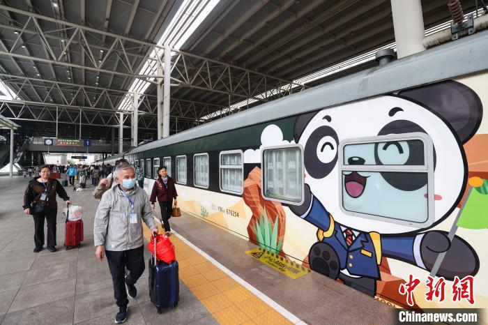 旅客登上“熊猫专列”。新华社
