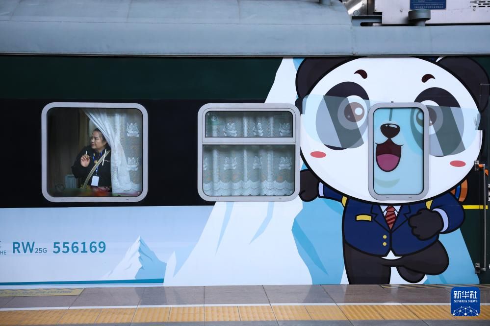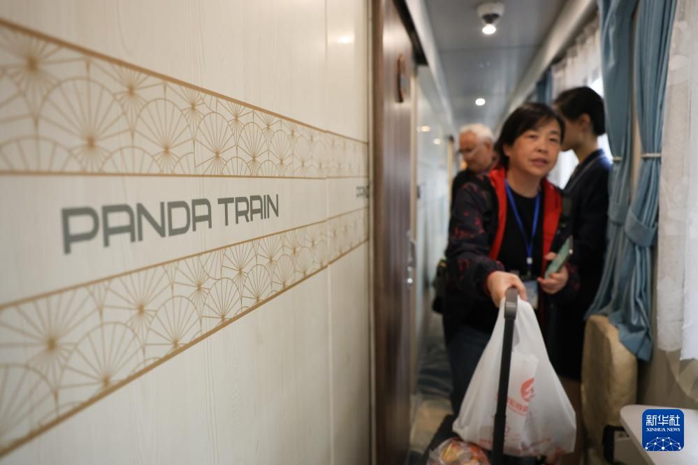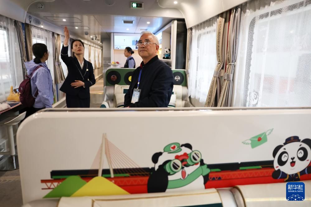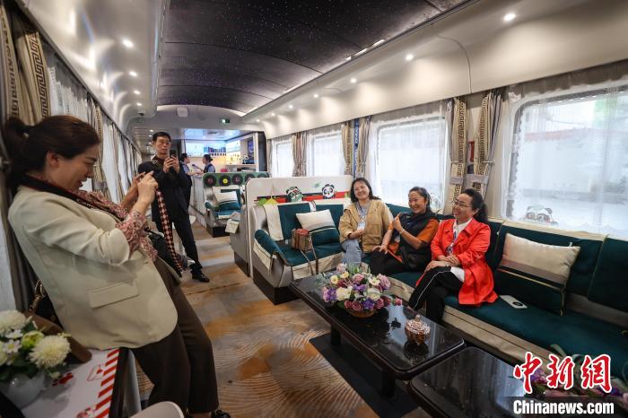 旅客登上“熊猫专列”后体验列车文化。新华社