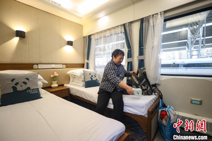 旅客登上“熊猫专列”后进入包间。新华社