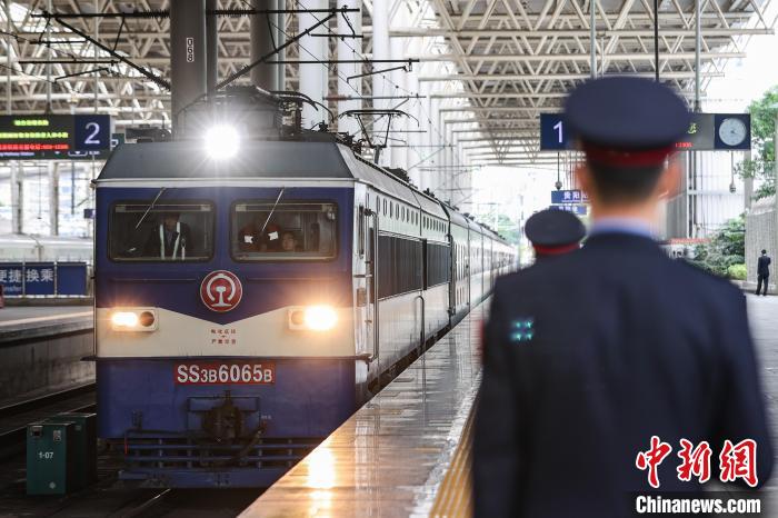 “熊猫专列”驶离贵阳火车站。新华社