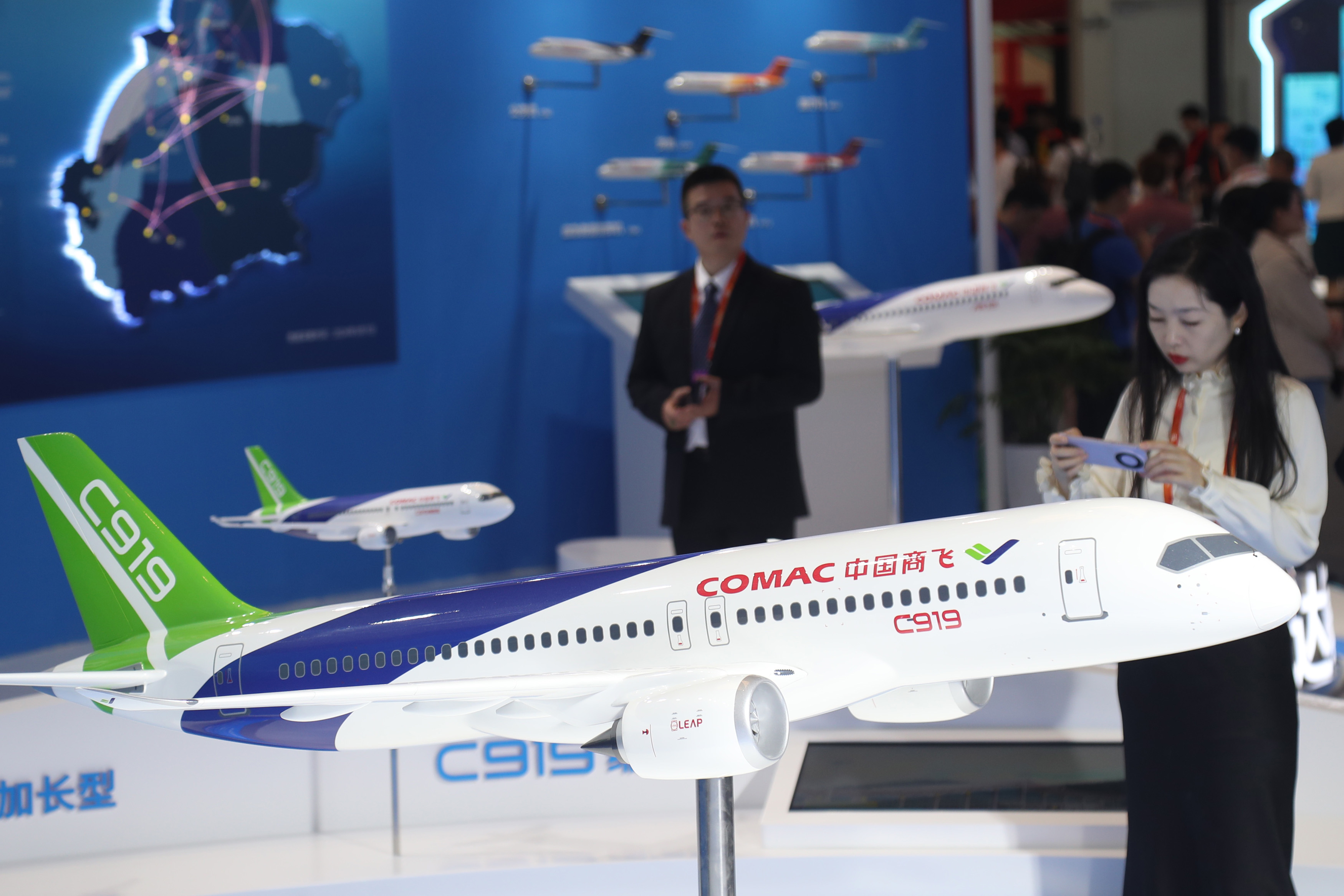 C919大飞机模型吸引观众目光。中新社