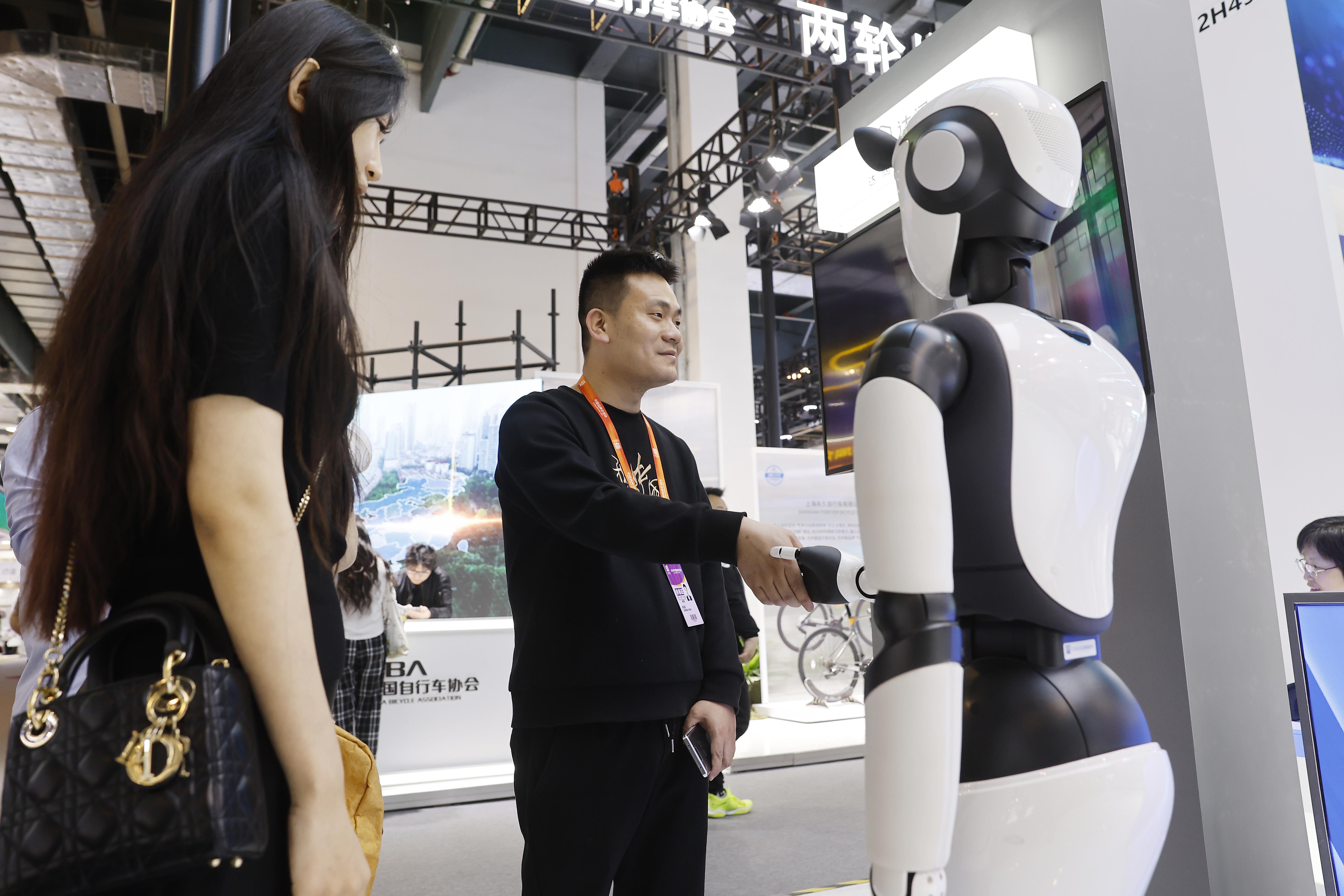 5月12日,观众与智能机器人互动。 中新社