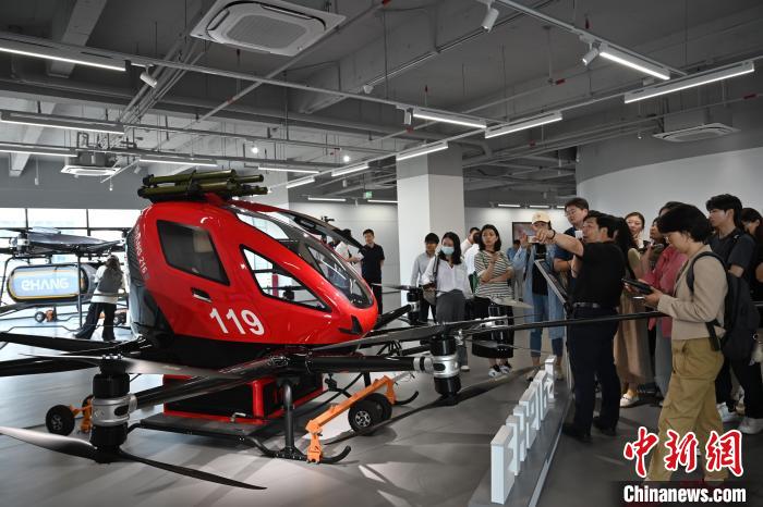5月14日,2024年“高质量发展调研行”广东主题采访活动在广州启动。当日,媒体记者走进广州亿航智能技术有限公司的展厅,功能各异的无人驾驶航空器吸引媒体参观拍摄。据介绍,2024年4月,广州亿航智能技术有限公司获得中国民航局颁发的EH216-S无人驾驶载人航空器系统生产许可证,加上此前已获得的型号合格证和标准适航证,广州亿航智能技术有限公司成为全球首个集齐无人驾驶载人航空器“三证”的企业。随着广东低空空域、基础设施等配套资源不断优化完善,“低空经济”应用场景快速发展,“低空经济”正蓄势高飞。图为5月14日,广州市黄埔区,媒体记者在广州亿航智能技术有限公司展厅参观体验亿航EH216-S无人驾驶载人航空器。