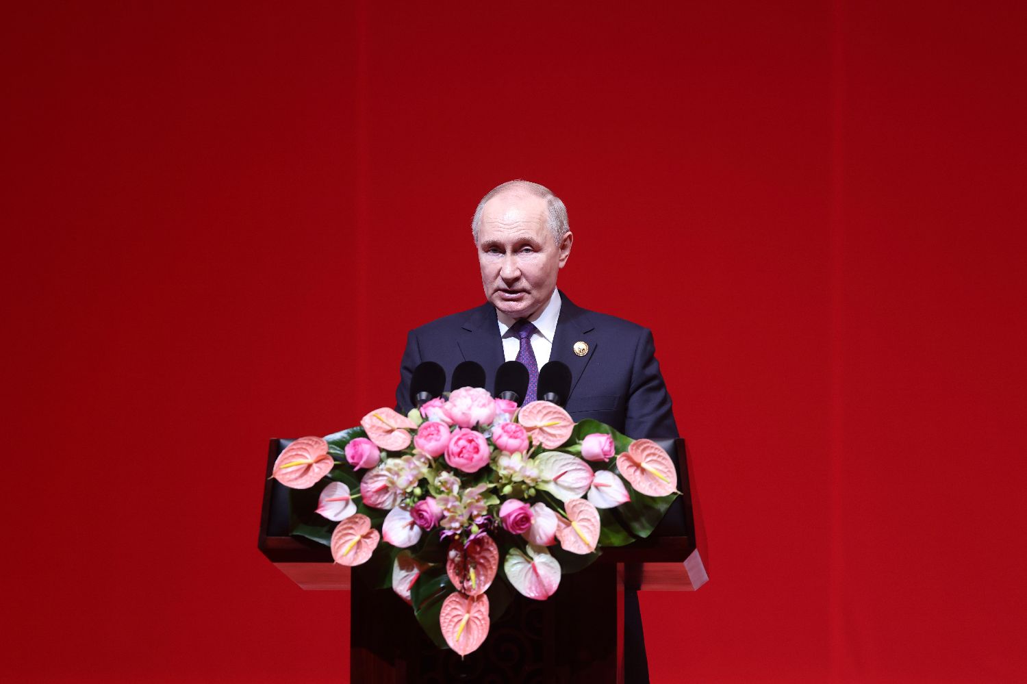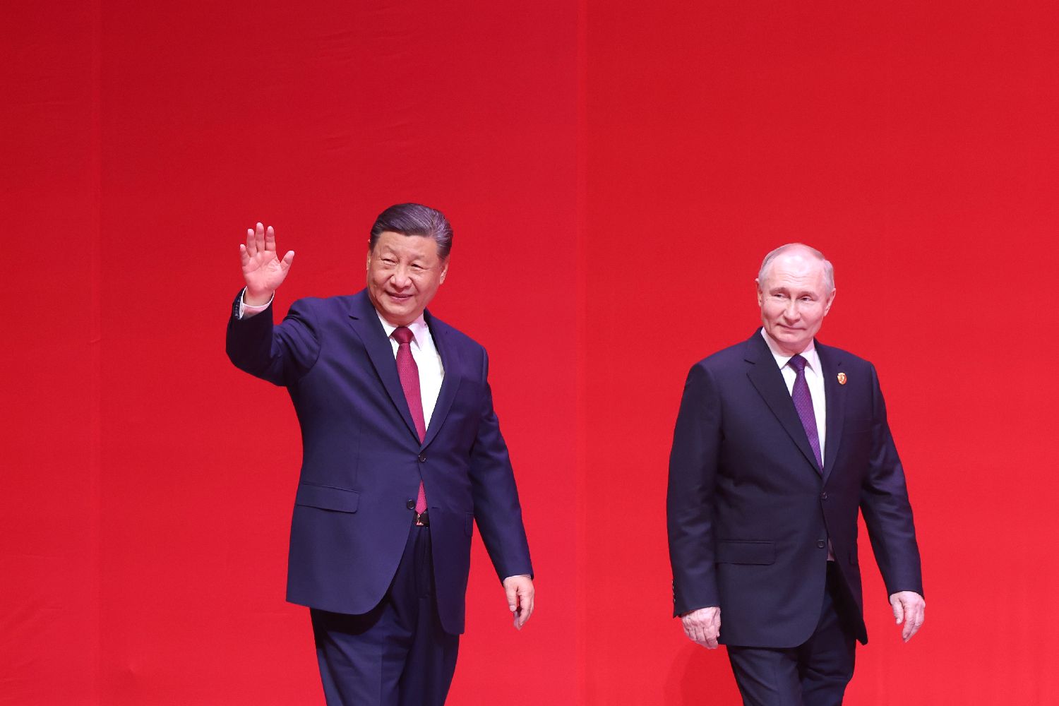 5月16日下午,习近平和普京在北京国家大剧院共同出席“中俄文化年”开幕式暨庆祝中俄建交75周年专场音乐会并致辞。习近平和普京在热烈的掌声中一同步入会场。中新社