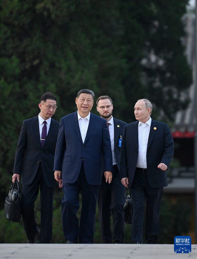 5月16日晚,习近平在北京中南海同普京举行小范围会晤。新华社