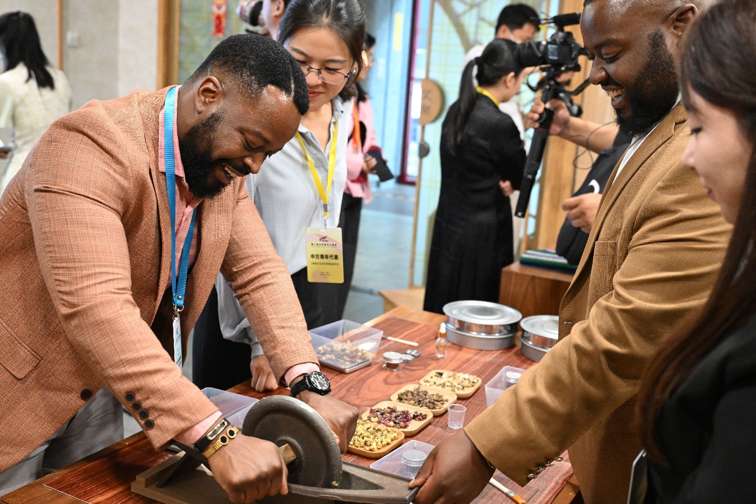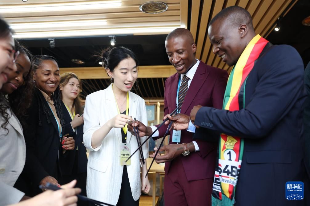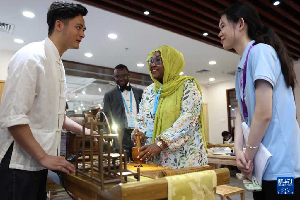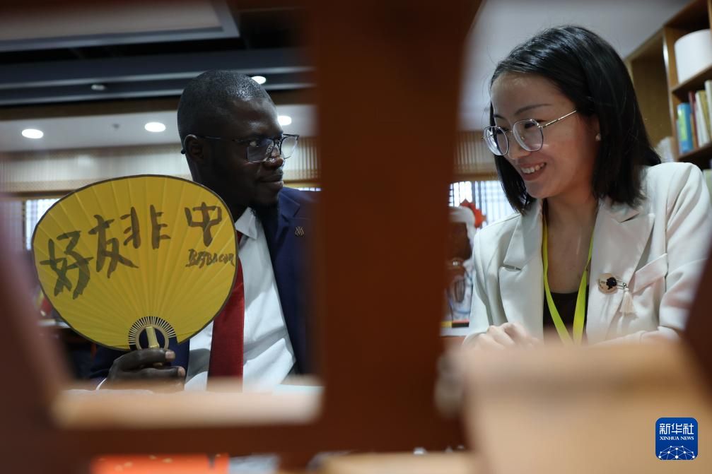 5月20日,第八届中非青年大联欢在位于北京的中国宋庆龄青少年科技文化交流中心开幕。本次中非青年大联欢以“汇聚青春力量 共建中非现代化”为主题,由外交部、中国宋庆龄基金会、浙江省人民政府主办,来自中非合作论坛成员中的52个非方成员的共64名非方青年代表参加。当日,参加大联欢活动的中非青年代表走进位于北京的中国宋庆龄青少年科技文化交流中心,体验印染、刺绣、书法等多种民俗,感受中国传统文化的魅力,在交流互动中增进友谊。今年大联欢活动于5月19日至26日在北京和浙江金华举办。图为开幕式现场。中新社