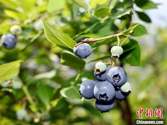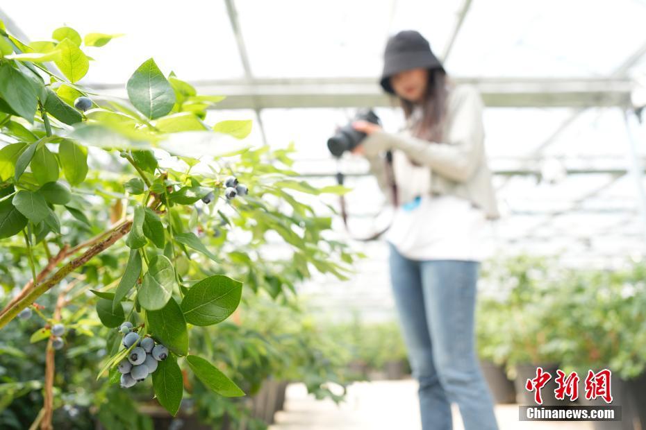 5月22日,在山东省日照市东港区陈疃镇蓝莓产学研基地,蓝莓吸引参观者。中新网
