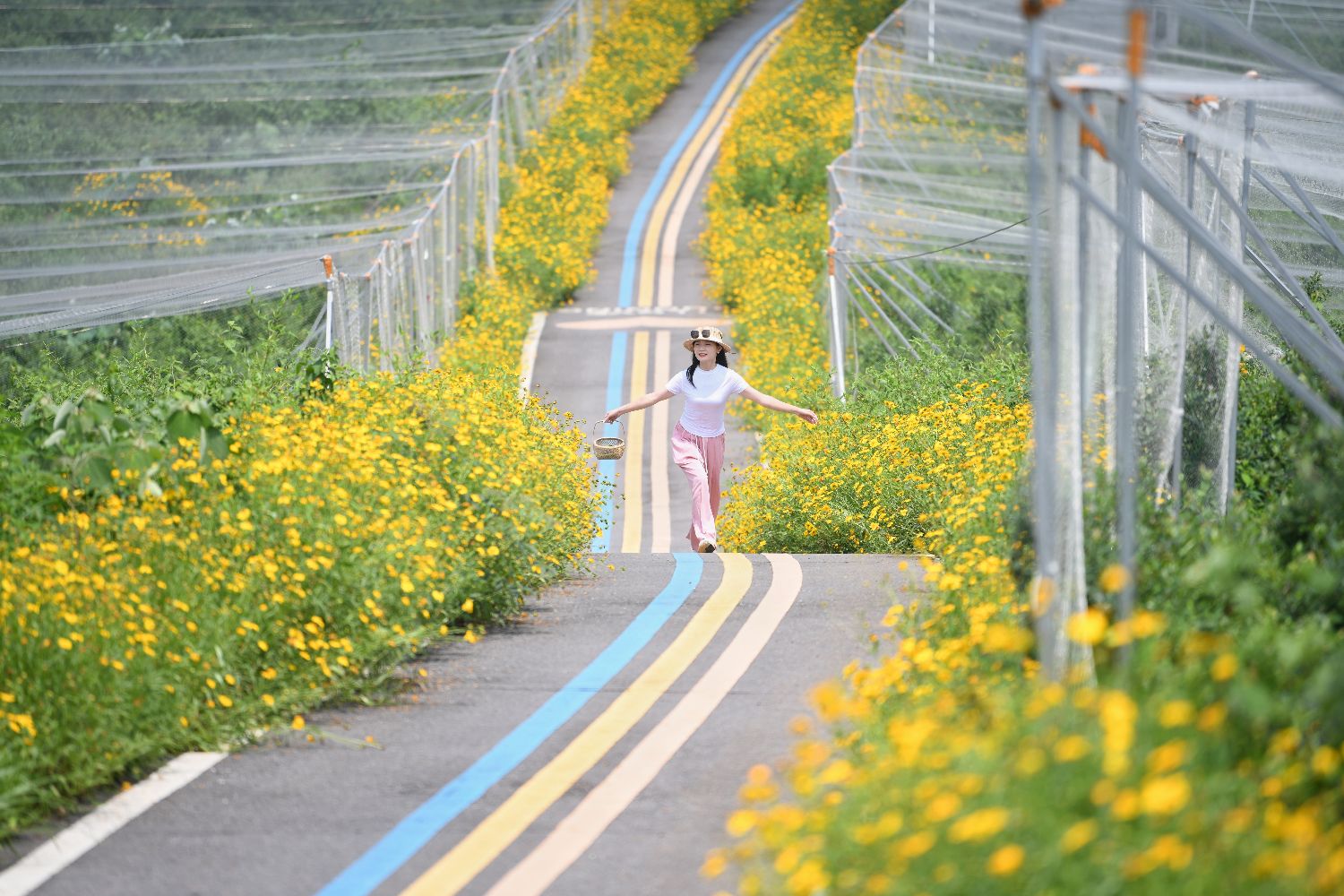 5月23日,在湖南省长沙市望城区茶亭镇狮子岭村,游客行走在风景如画的蓝莓基地。中新社
