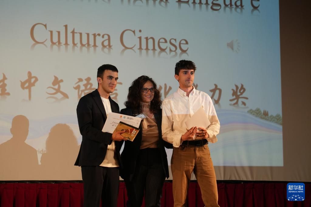 5月24日,在意大利马切拉塔大学举行的第23届“汉语桥”世界大学生中文比赛意大利暨圣马力诺赛区比赛上,教师为获奖学生颁奖。新华社