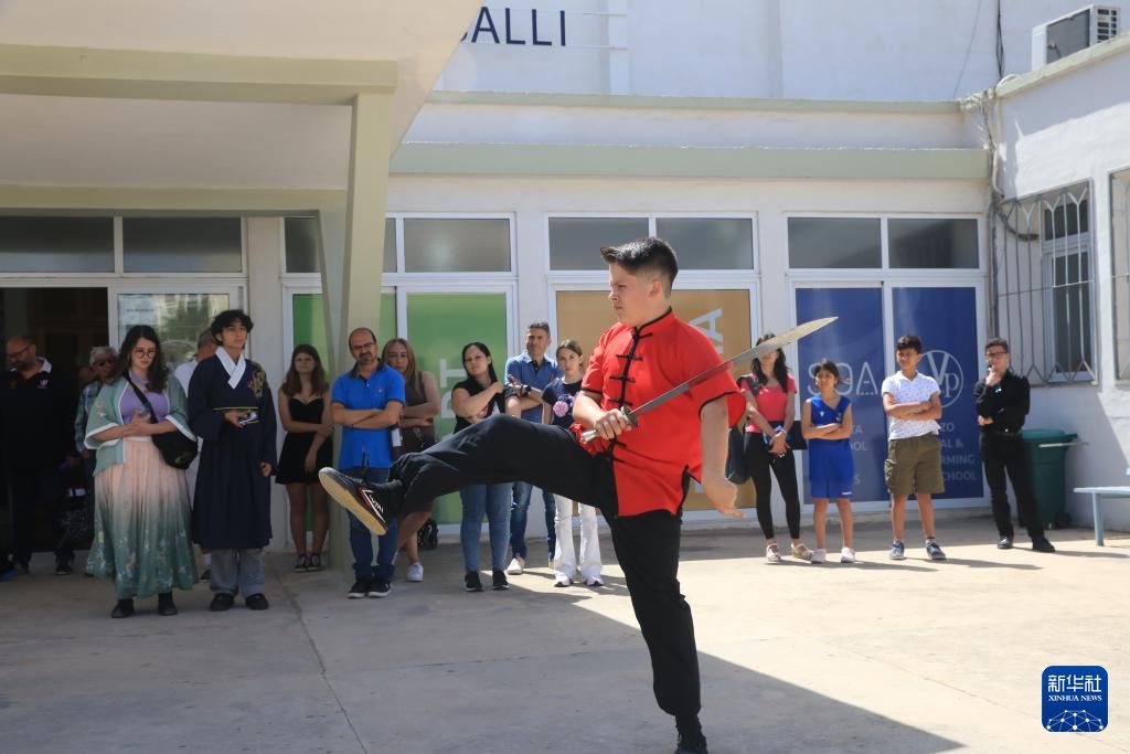 5月25日,在马耳他东部城市哈姆伦举行的第17届“汉语桥”世界中学生中文比赛暨第4届“汉语桥”世界小学生中文秀马耳他赛区比赛上,一名参赛学生表演中国武术。新华社