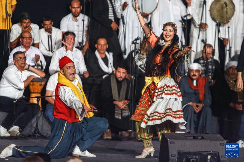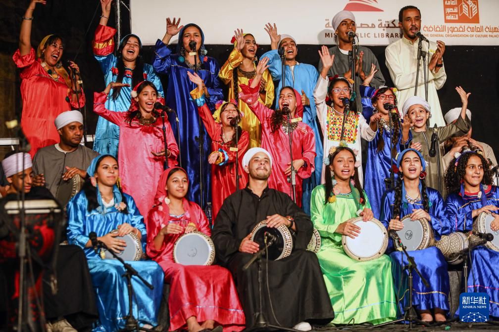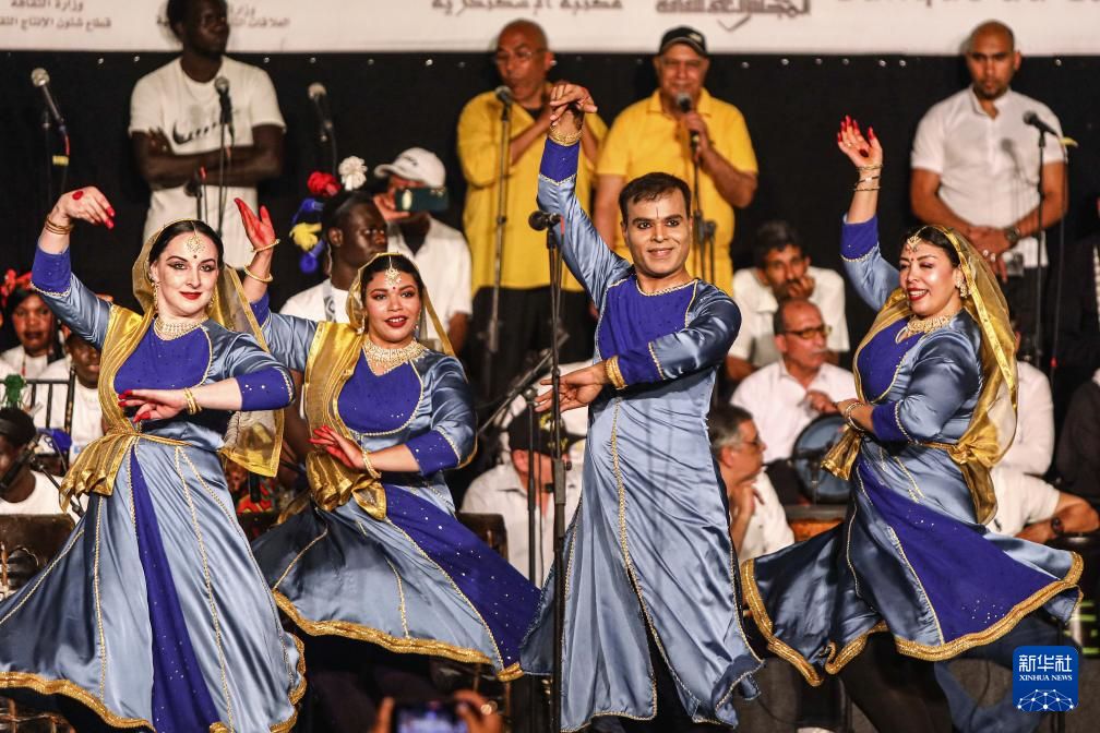 第十一届埃及国际鼓乐与传统艺术节开幕式上的表演。新华社